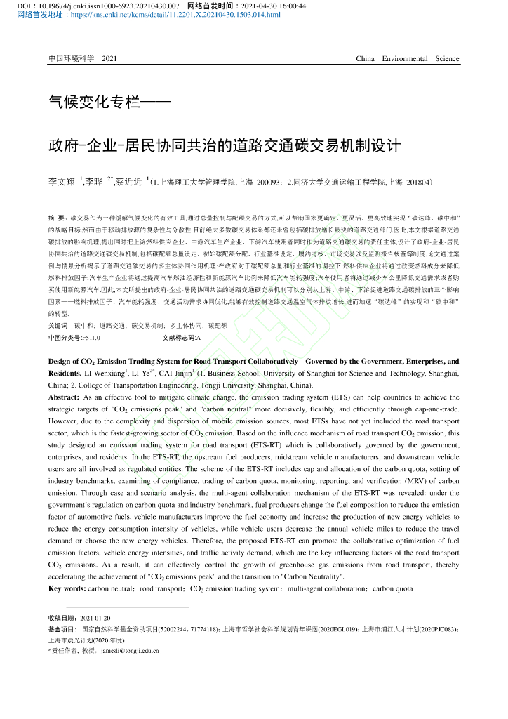 政府-企业-居民协同共治的道路交通碳交易机制设计.pdf