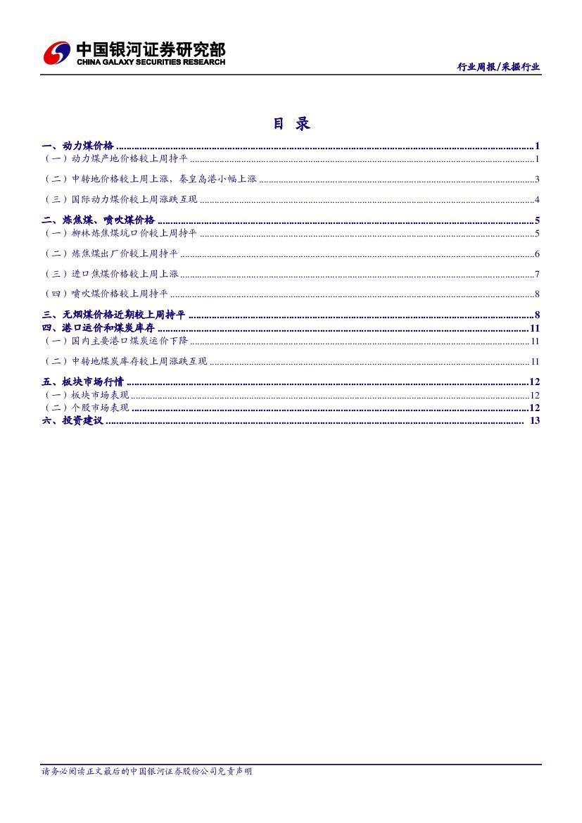 中国银河:采掘行业周报:动力煤高位震荡,焦煤景气仍能延续.pdf