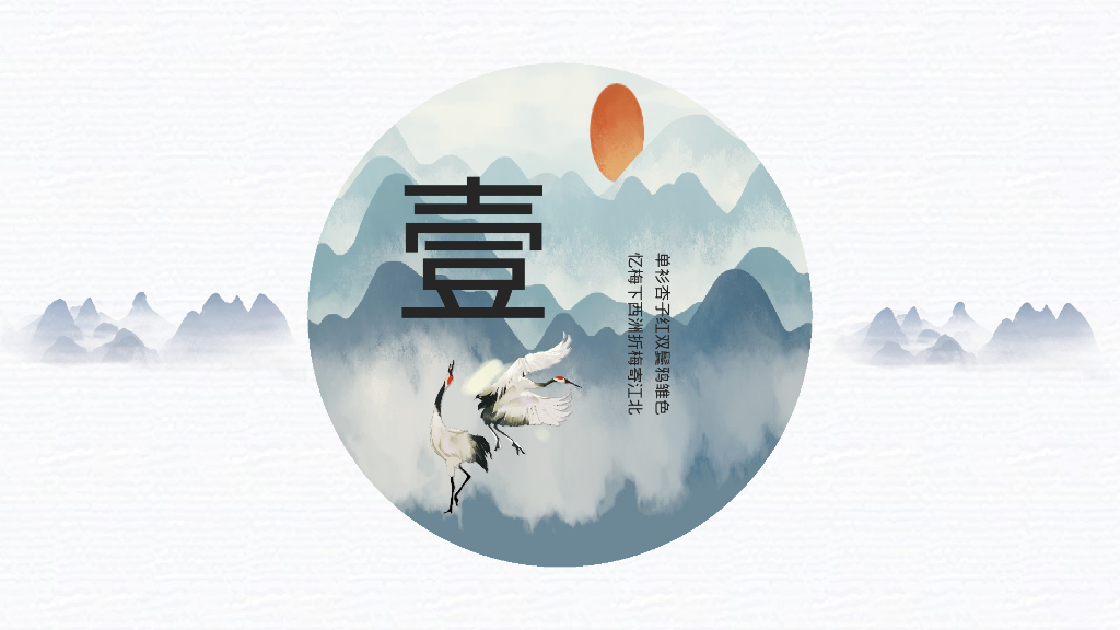 蓝色水墨群山红日背景的中国风通用PPT模板.ppt
