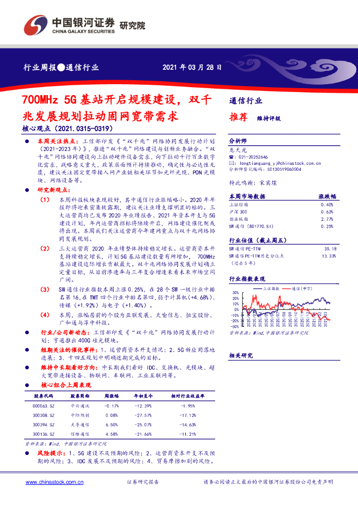 中国银河:通信行业周报:700MHz5G基站开启规模建设,双千兆发展规划拉动固网宽带需求.pdf