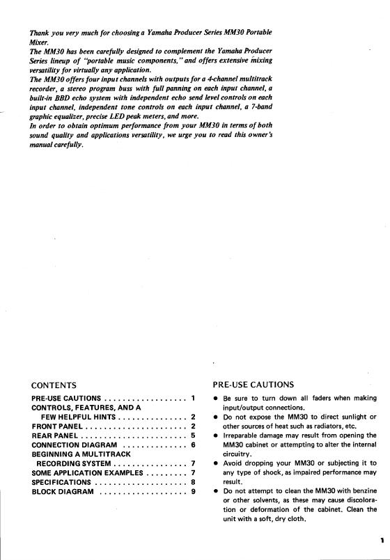 YAMAHA MM30 PORTABLE MIXER 用户手册.pdf
