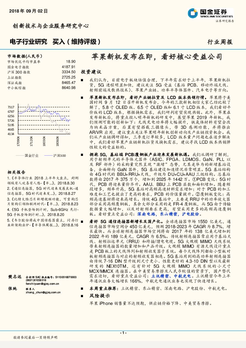 国金证券:电子行业研究:苹果新机发布在即,看好核心受益公司.pdf