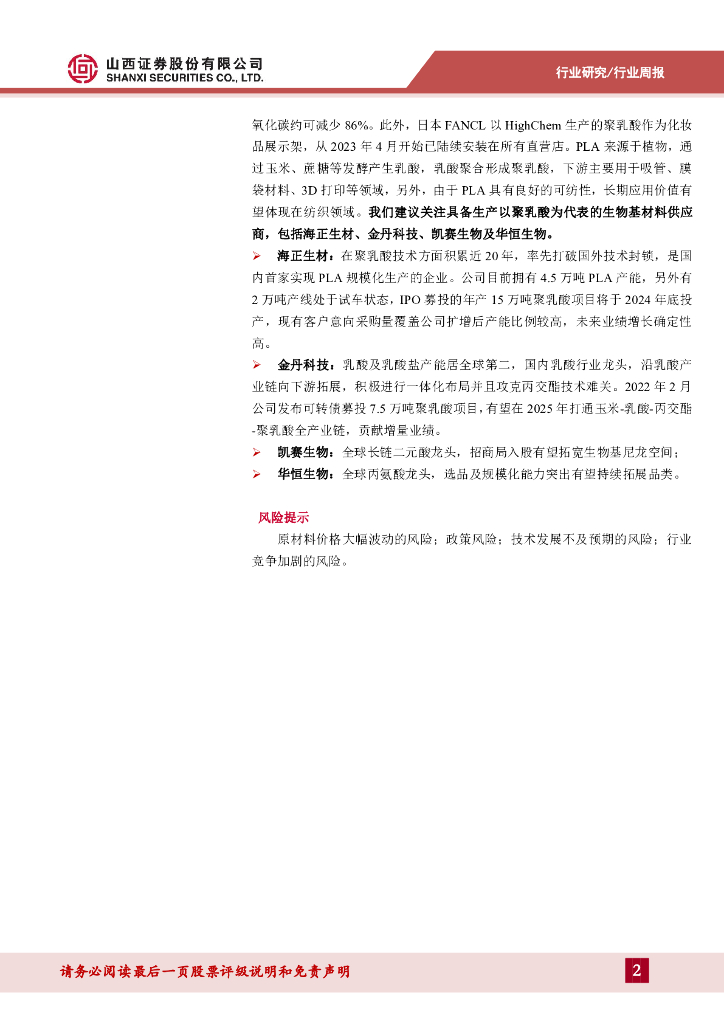 山西证券:新材料周报:聚乳酸应用持续拓展,重视生物基材料渗透率提升机会.pdf