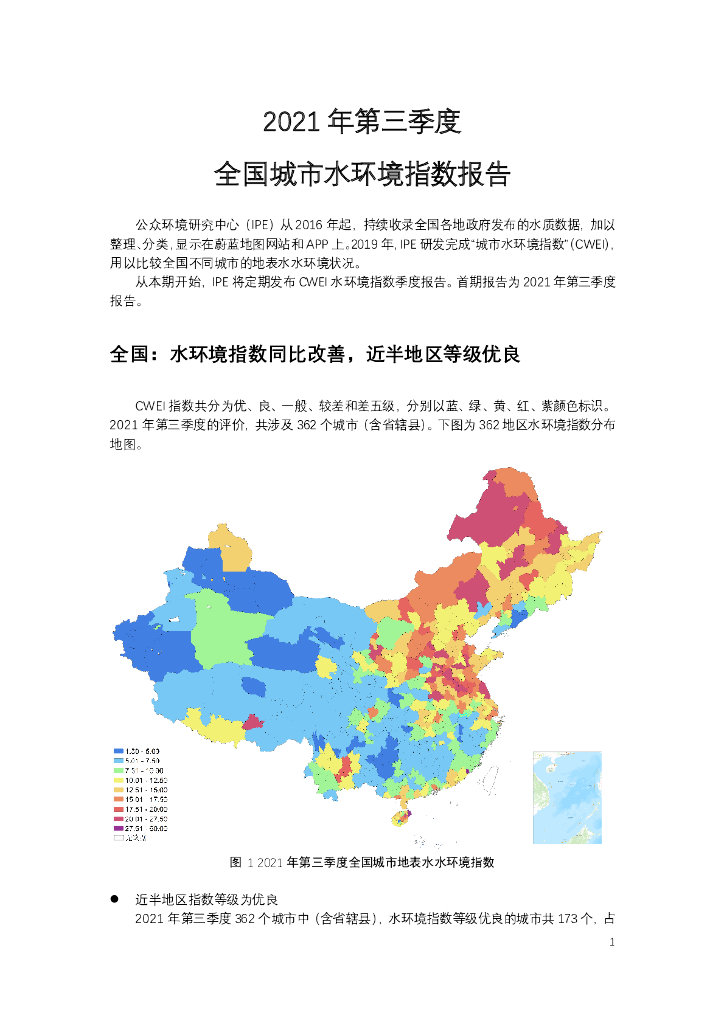 IPE公众环境研究中心:2021年第三季度全国城市水环境指数报告.pdf