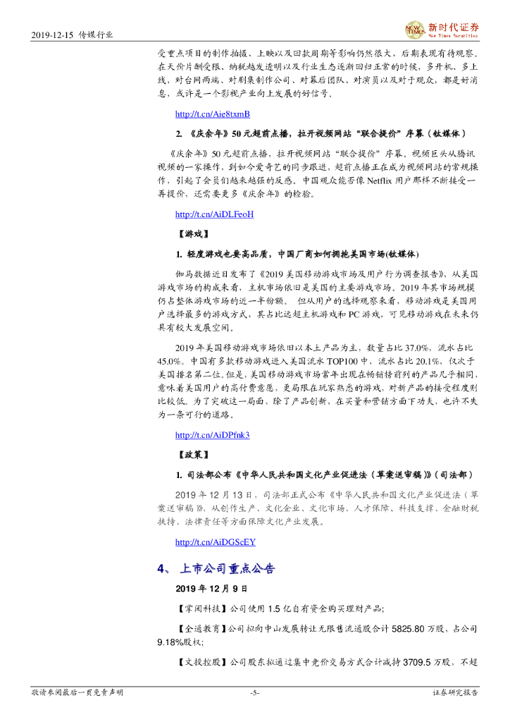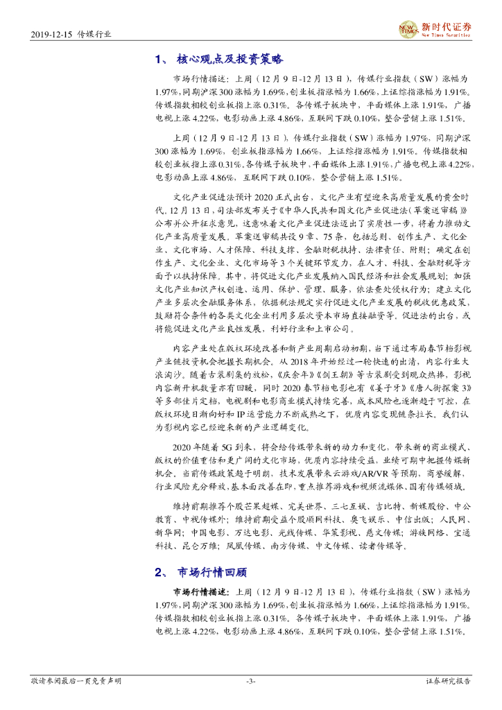 新时代证券:新时代传媒周报:文化产业促进法送审稿发布征求意见,2020整体看好传媒之布局春节档.pdf