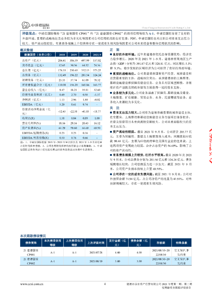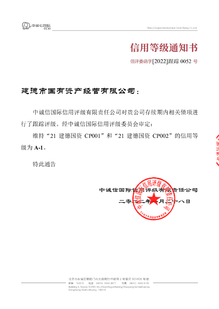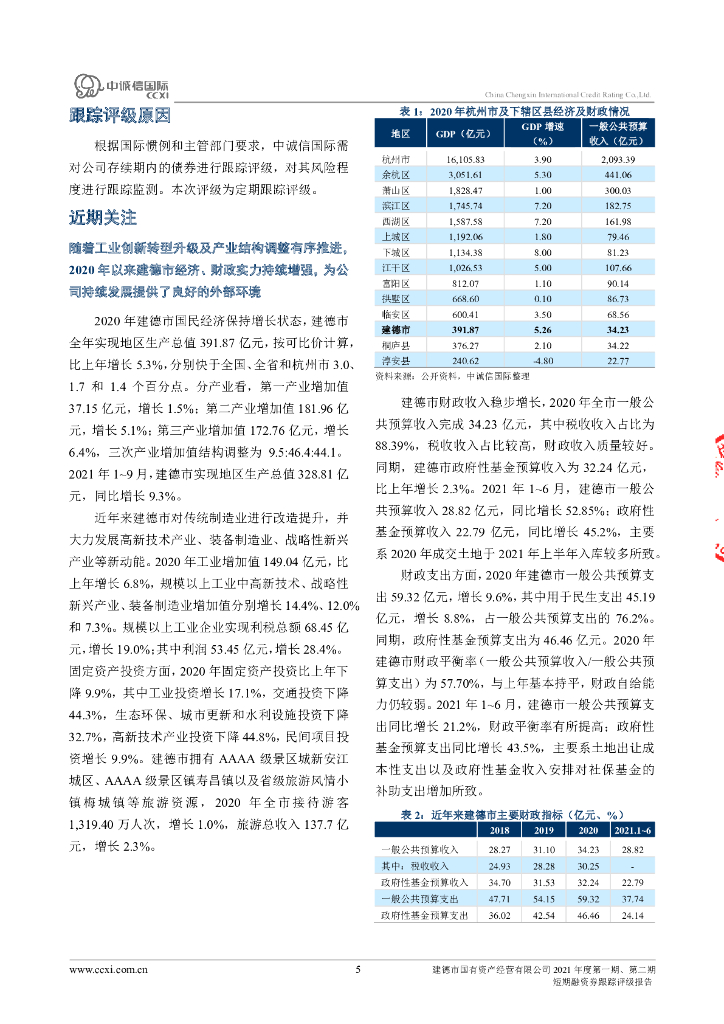中诚信:建德市国有资产经营有限公司2021年度第一期、第二期短期融资券跟踪评级报告.pdf