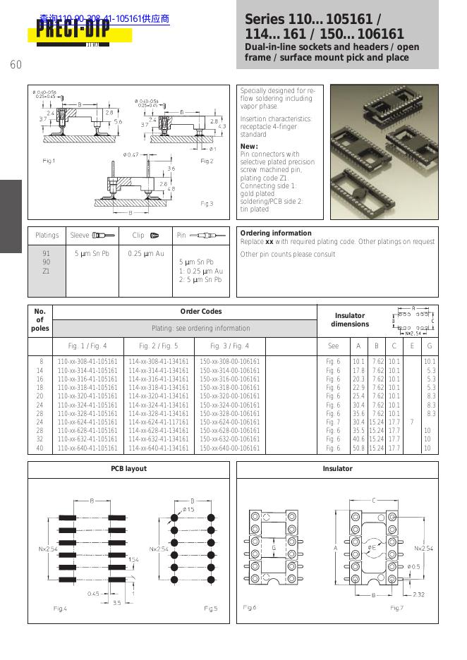 PRECI-DIP Series 110…105161 / 114…161 / 150…106161 Dual-in-line sockets and headers / open frame / surface mount pick and place 数据手册.pdf
