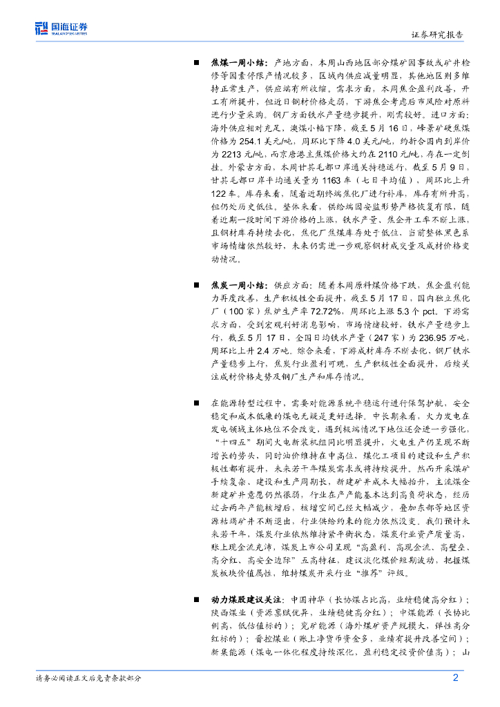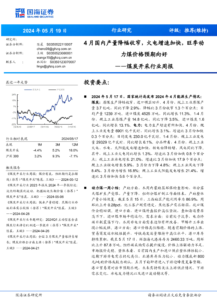 国海证券:煤炭开采行业周报:4月国内产量降幅收窄,火电增速加快,旺季动力煤价格预期向好.pdf
