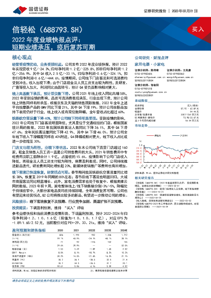国信证券:倍轻松(688793)-2022年度业绩快报点评:短期业绩承压,疫后复苏可期.pdf
