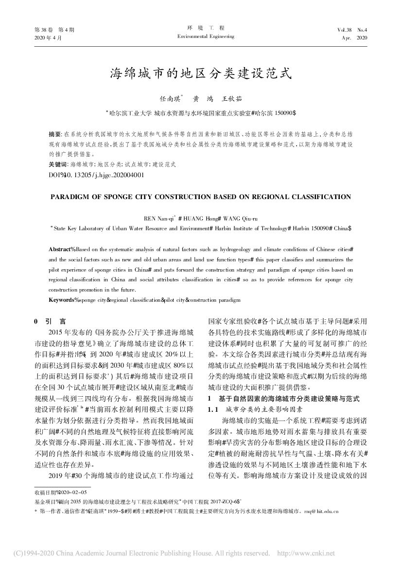 哈尔滨工业大学:海绵城市的地区分类建设范式.pdf