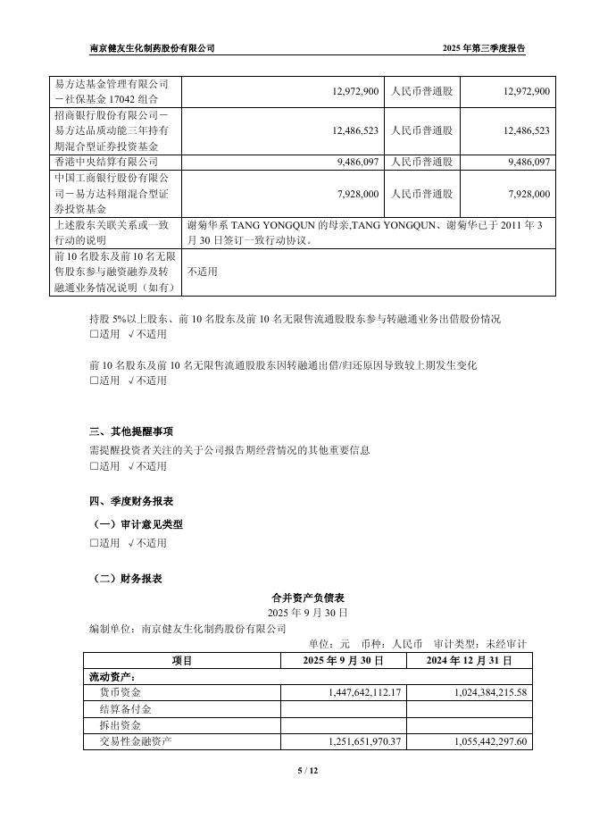 603707-健友股份:健友股份2025年三季度报告.pdf