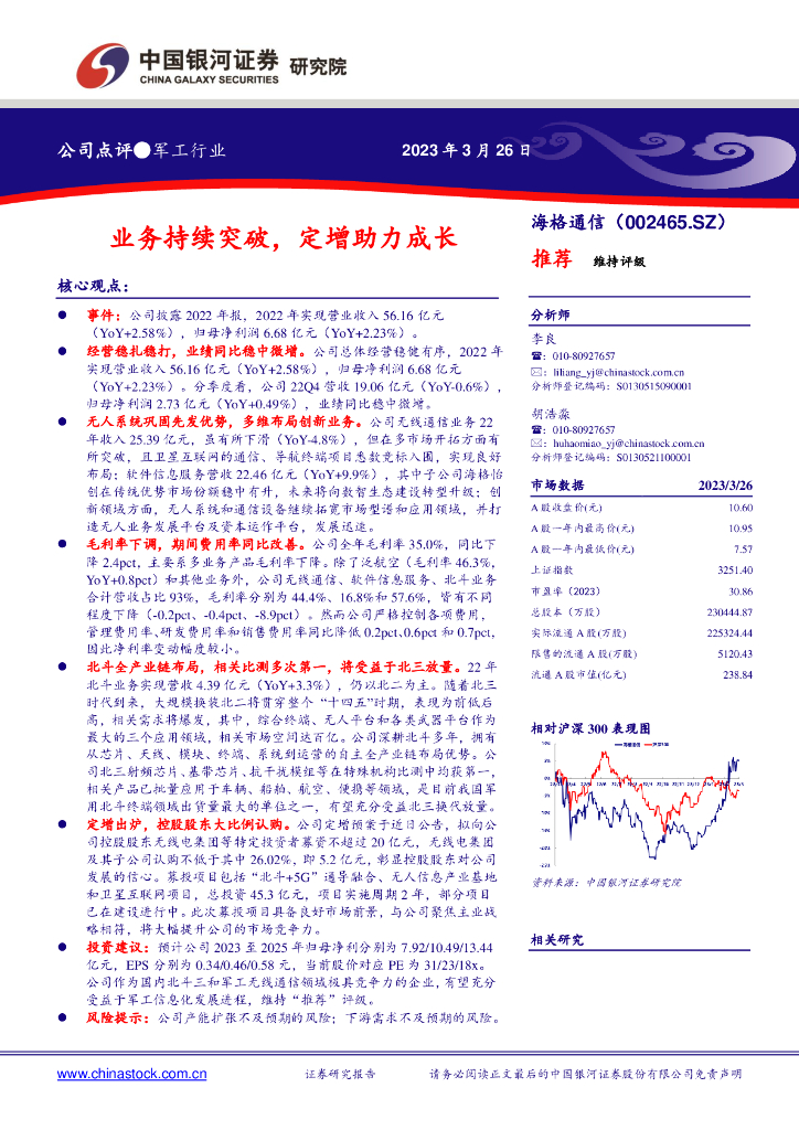 中国银河:海格通信(002465)-业务持续突破,定增助力成长.pdf