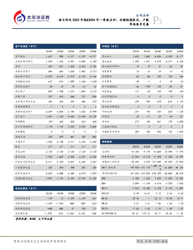 太平洋证券:海力风电2023年报&2024年一季报点评:业绩短期承压,产能布局逐步完善.pdf