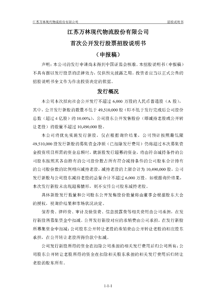 江苏万林现代物流股份有限公司上交所风险警示板IPO上市招股说明书.pdf