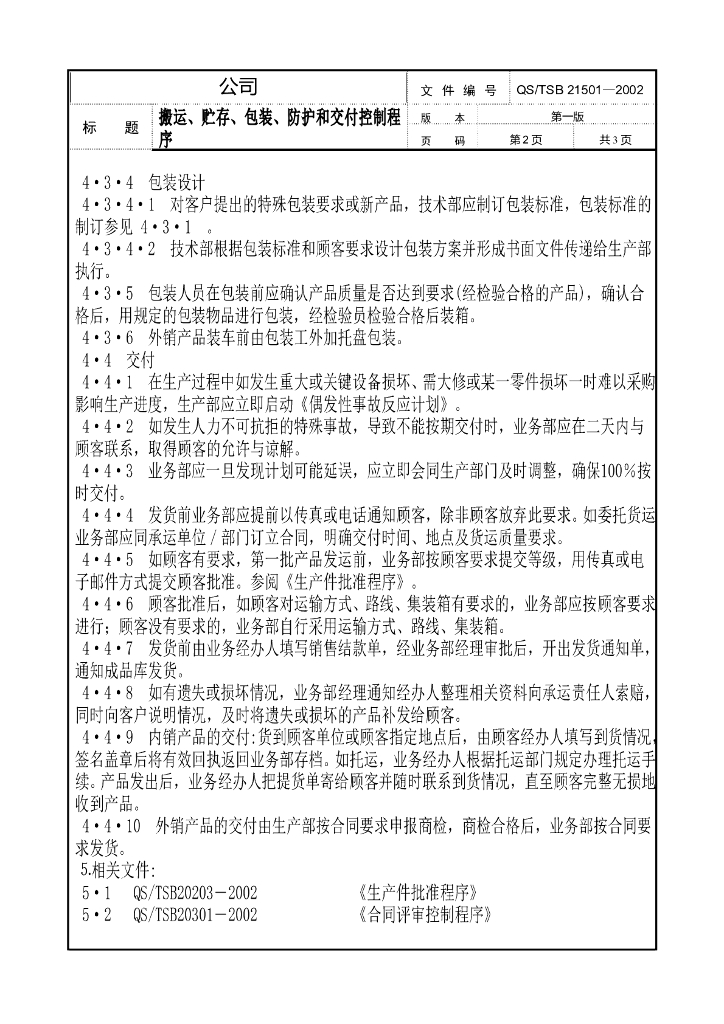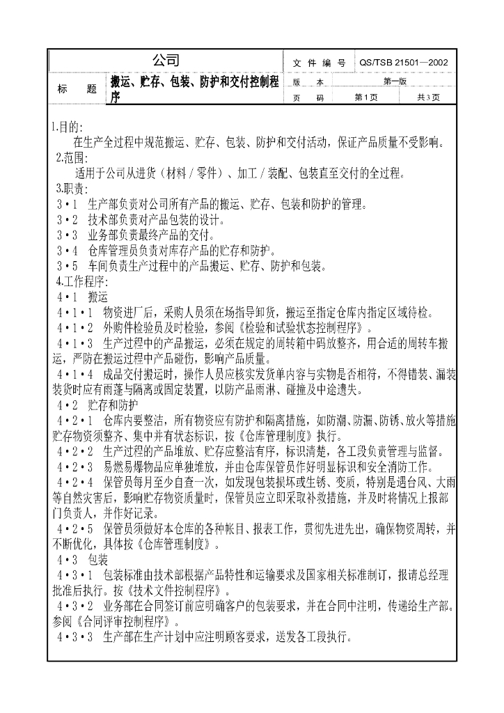 产品搬运、贮存、包装、防护和交付控制程序.doc