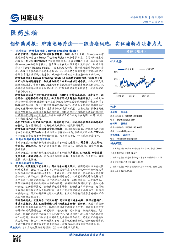 国盛证券:医药生物:创新药周报:肿瘤电场疗法——狙击癌细胞,实体瘤新疗法潜力大.pdf