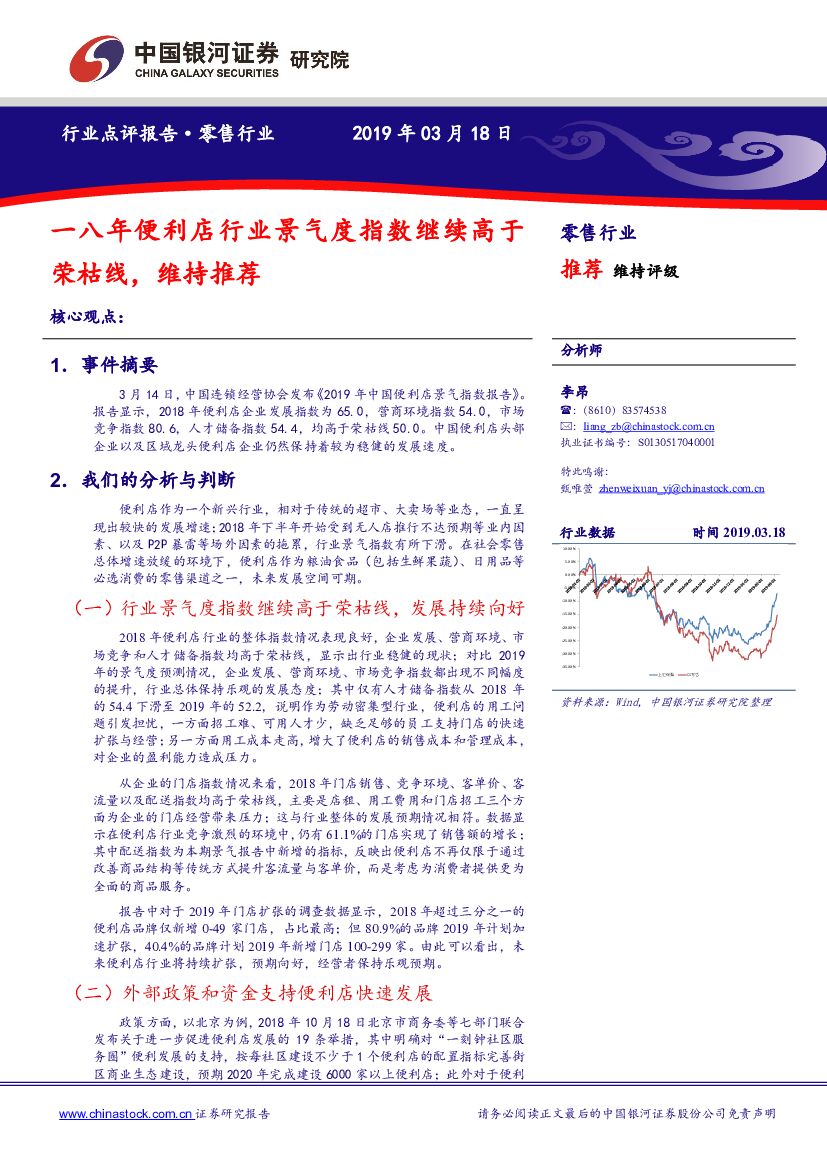 中国银河:零售行业点评报告:一八年便利店行业景气度指数继续高于荣枯线,维持推荐.pdf