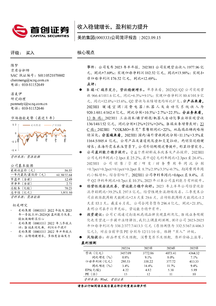 首创证券:美的集团(000333)-公司简评报告:收入稳健增长,盈利能力提升.pdf