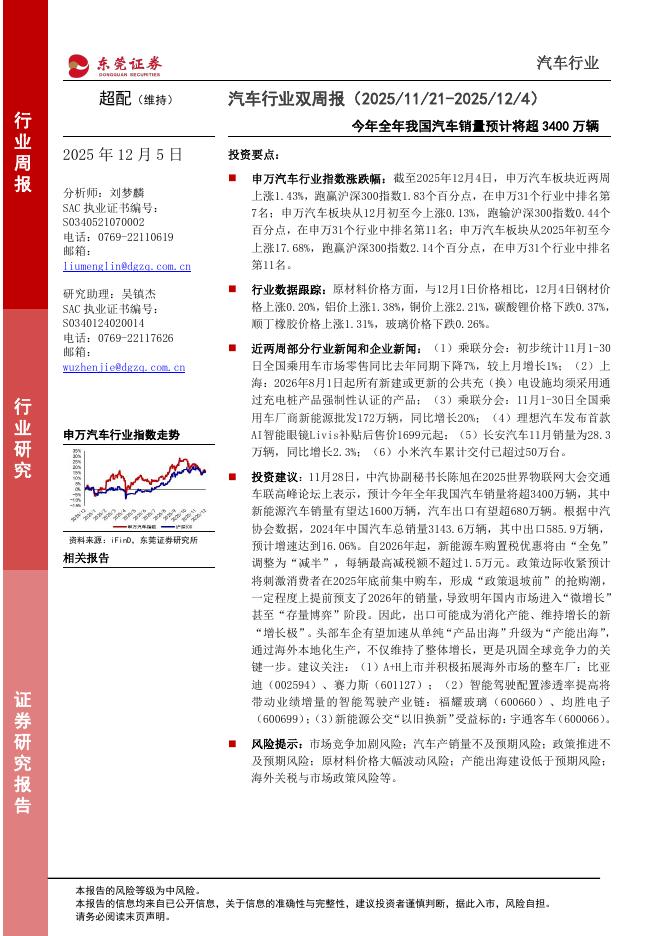 东莞证券:汽车行业双周报:今年全年我国汽车销量预计将超3400万辆.pdf