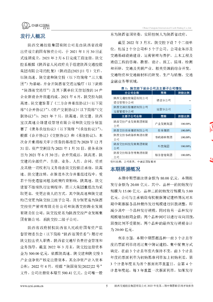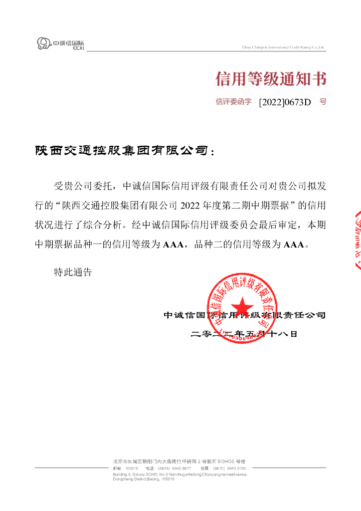 中诚信:陕西交通控股集团有限公司2022年度第二期中期票据信用评级报告(更新).pdf