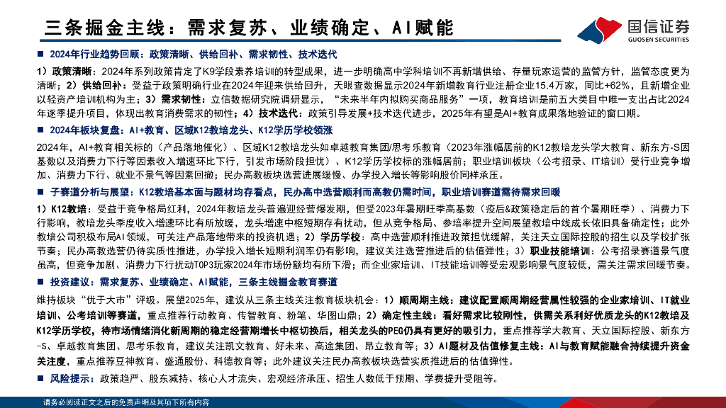 国信证券:教育行业2025年投资策略:三条掘金主线:需求复苏、业绩确定、AI赋能.pdf