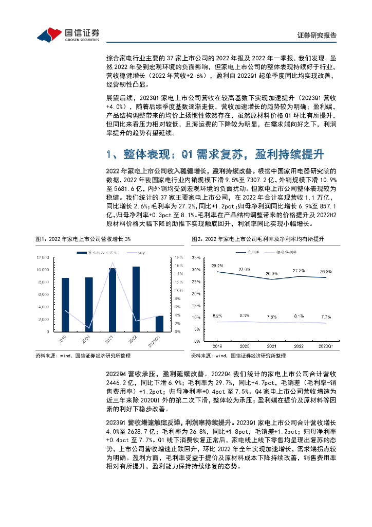 国信证券:家电行业2022年报&2023年一季报综述:一季度经营企稳向上,白电板块表现领先.pdf