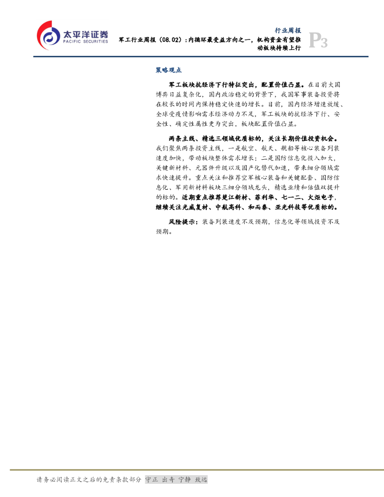 太平洋证券:军工行业周报:内循环最受益方向之一,机构资金有望推动板块持续上行.pdf