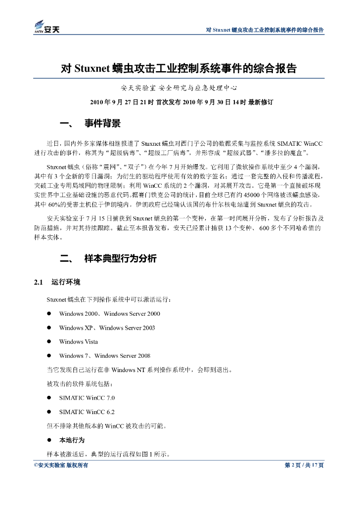 安天实验室:对Stuxnet蠕虫攻击工业控制系统事件的综合报告.pdf