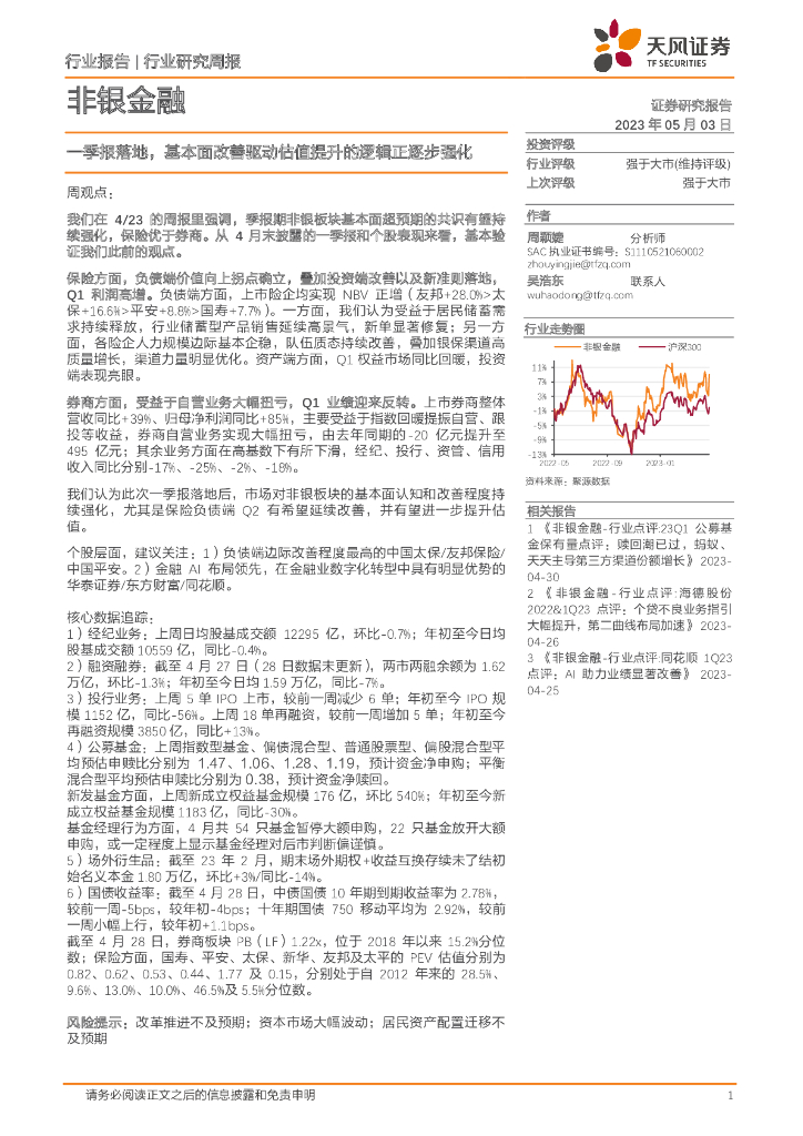 天风证券:非银金融行业研究周报:一季报落地,基本面改善驱动估值提升的逻辑正逐步强化.pdf