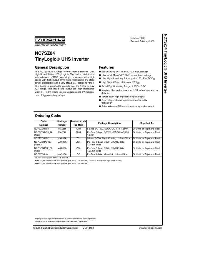 FAIRCHILD NC7SZ04 数据手册.pdf