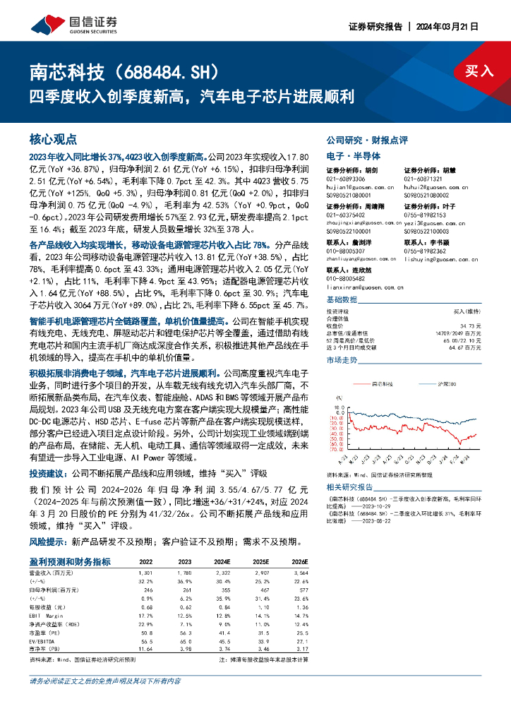 国信证券:南芯科技(688484)-四季度收入创季度新高,汽车电子芯片进展顺利.pdf