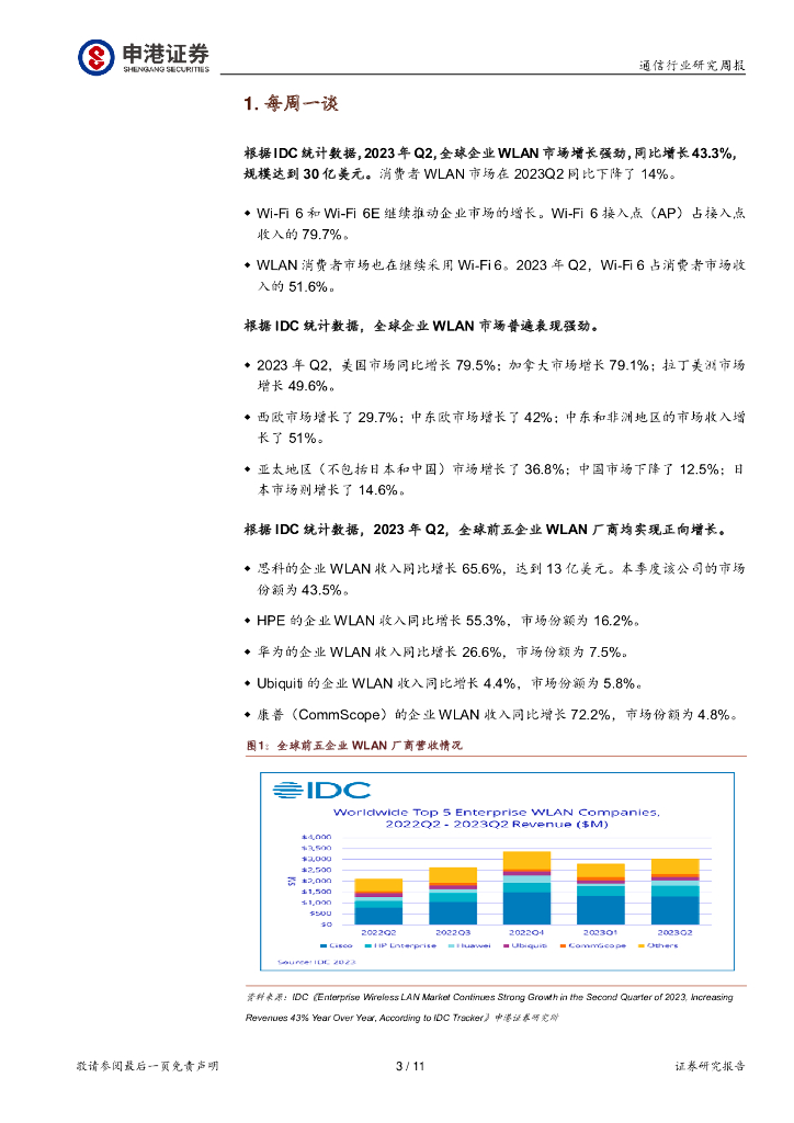 申港证券:通信行业研究周报:Q2全球企业WLAN市场增长强劲.pdf