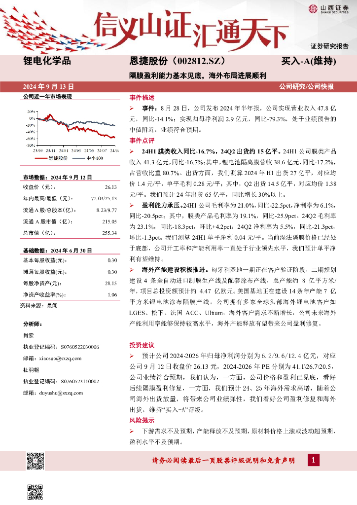 山西证券:恩捷股份(002812)-隔膜盈利能力基本见底,海外布局进展顺利.pdf
