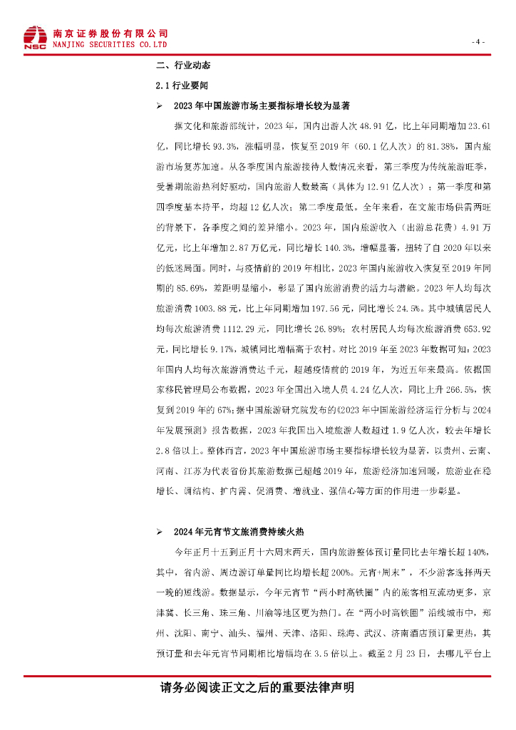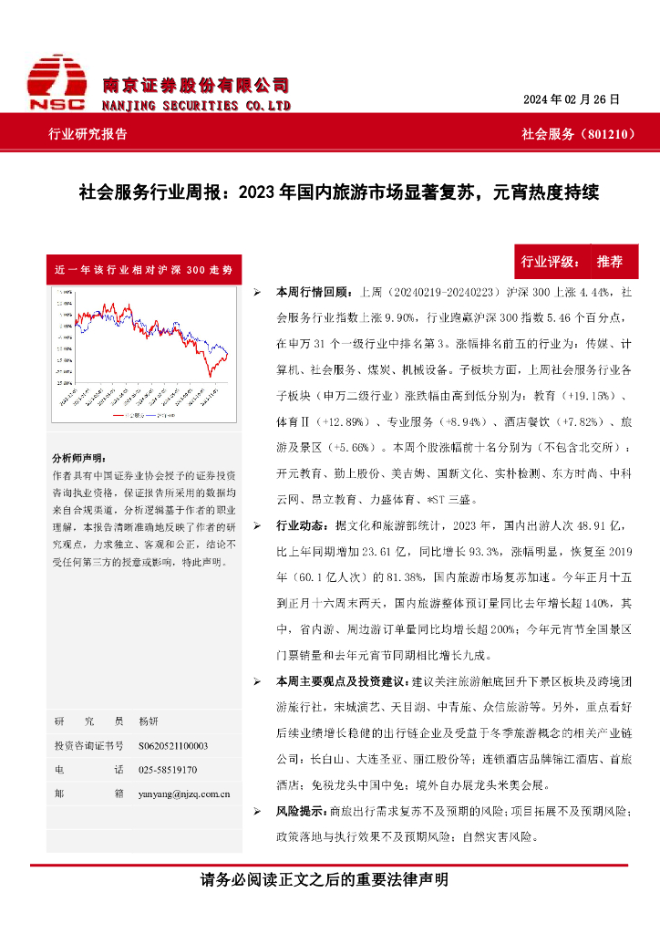 南京证券:社会服务行业周报:2023年国内旅游市场显著复苏,元宵热度持续.pdf