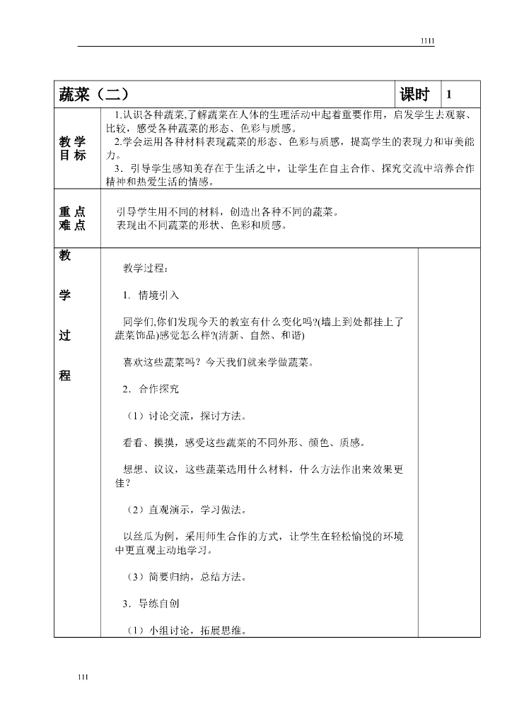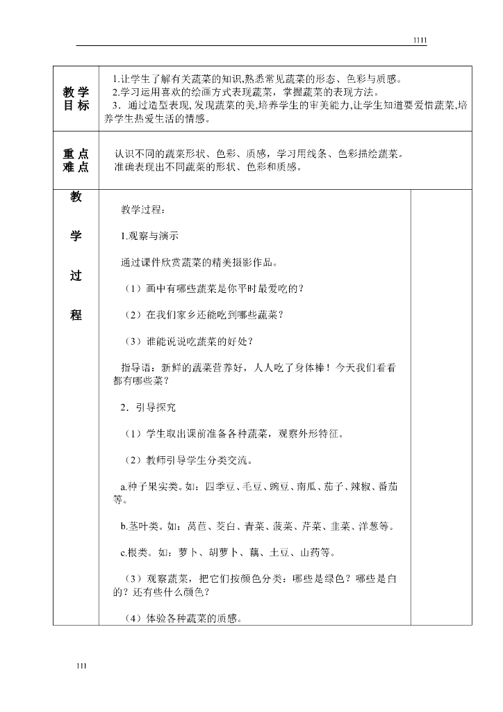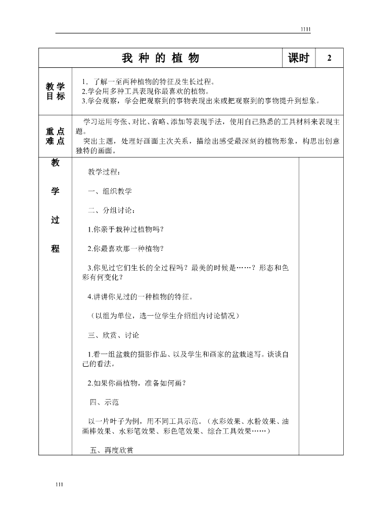苏少版美术六上第十一册全册教案设计(表格).doc
