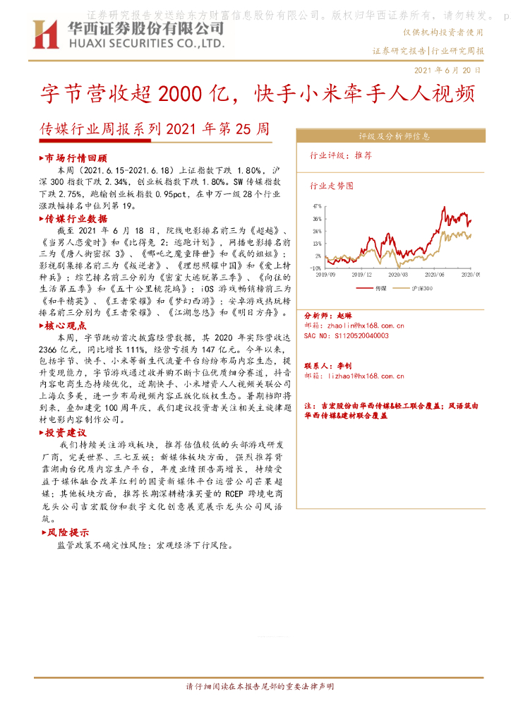 华西证券:传媒行业周报系列2021年第25周:字节营收超2000亿,快手小米牵手人人视频.pdf