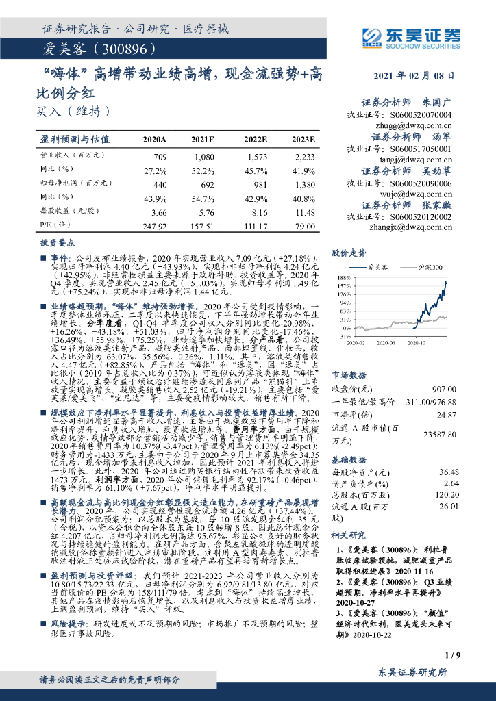 东吴证券:爱美客(300896)-“嗨体”高增带动业绩高增,现金流强势+高比例分红.pdf