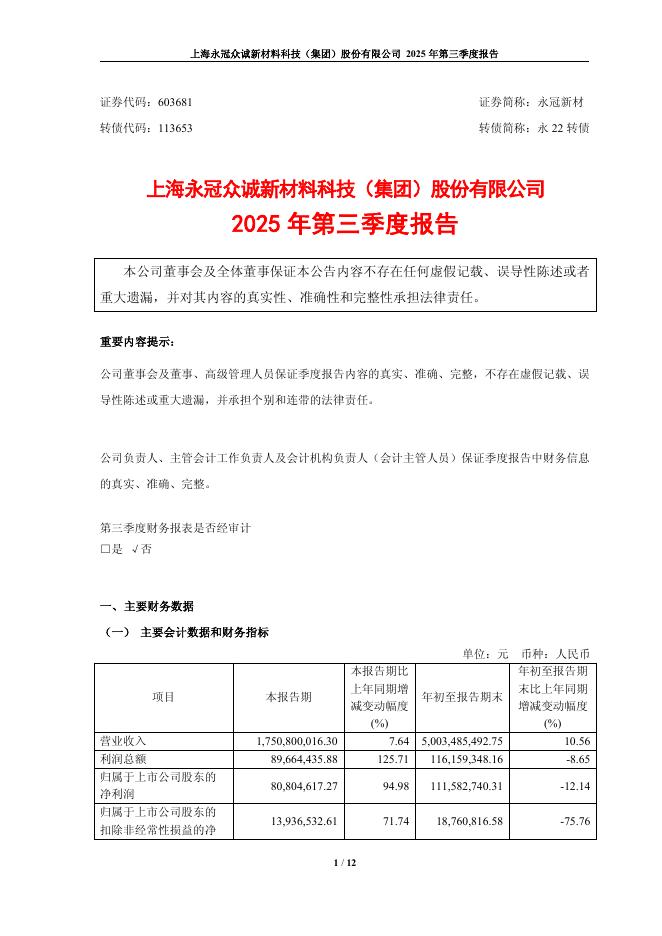 113653-永冠新材:上海永冠众诚新材料科技(集团)股份有限公司2025年第三季度报告.pdf