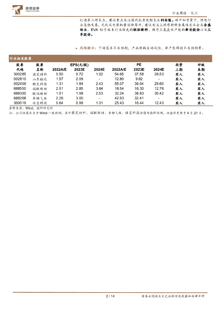 德邦证券:化工行业周报:新宙邦拟3600万元参设合资公司,共同经营电子封装材料市场,晨光新材2000立方气凝胶项目即将投产.pdf