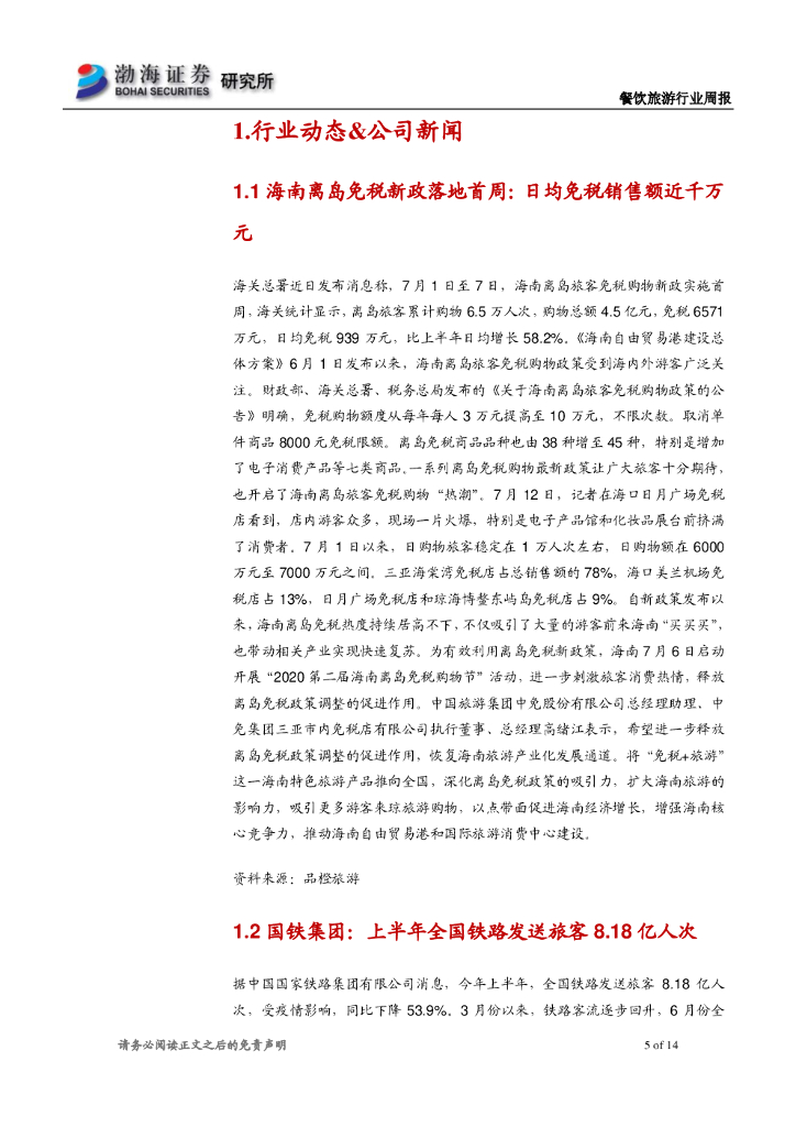 渤海证券:餐饮旅游行业周报:王府井设立免税子公司 关注旅游复工复业进展.pdf