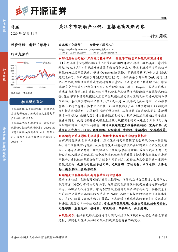开源证券:传媒行业周报:关注字节跳动产业链、直播电商及新内容.pdf