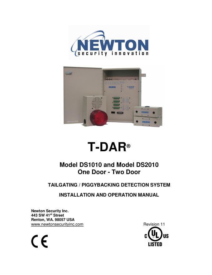 Newton Security Inc. T-DAR® 型号 DS1010 和 DS2010 尾随/跟随检测系统安装和操作手册.pdf