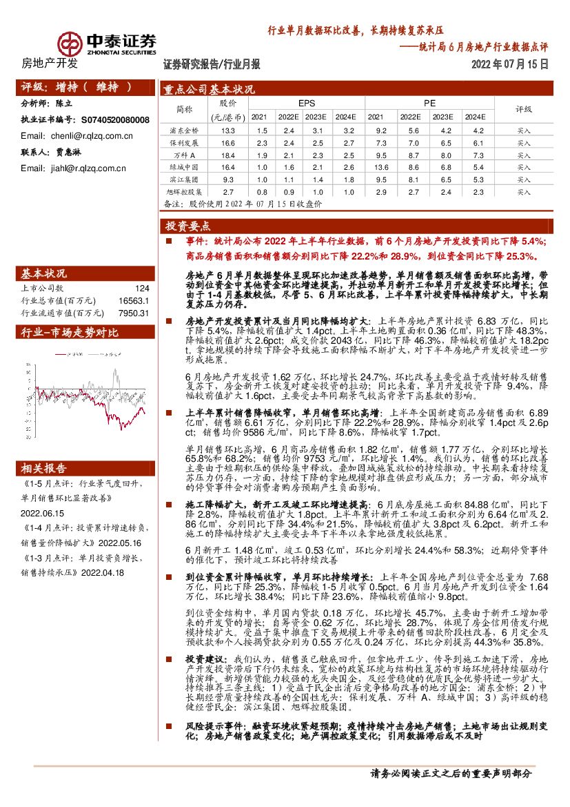 中泰证券:统计局6月房地产行业数据点评:行业单月数据环比改善,长期持续复苏承压.pdf