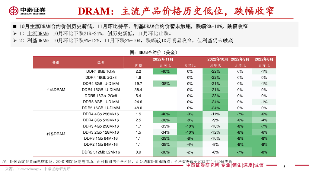 中泰证券:电子存储板块追踪八:DRAM历史新低、跌幅收窄 海外存储厂商展望23H2景气复苏.pdf