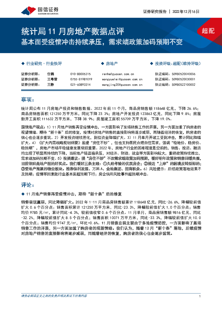国信证券:统计局11月房地产数据点评:基本面受疫情冲击持续承压,需求端政策加码预期不变.pdf