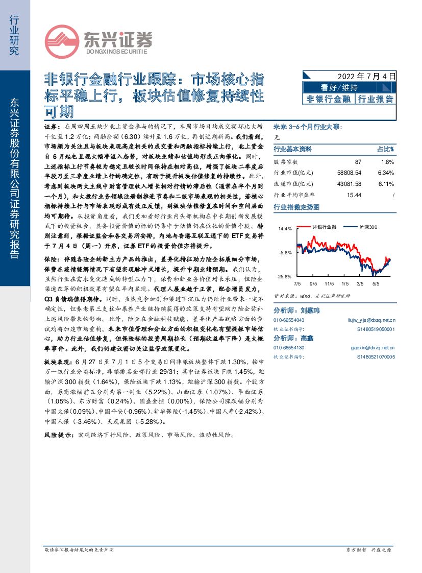 东兴证券:非银行金融行业跟踪:市场核心指标平稳上行,板块估值修复持续性可期.pdf
