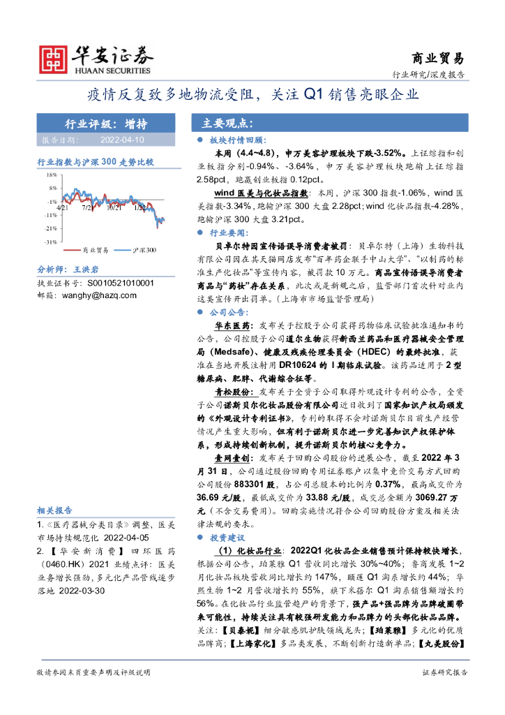 华安证券:商业贸易深度报告:疫情反复致多地物流受阻,关注Q1销售亮眼企业.pdf