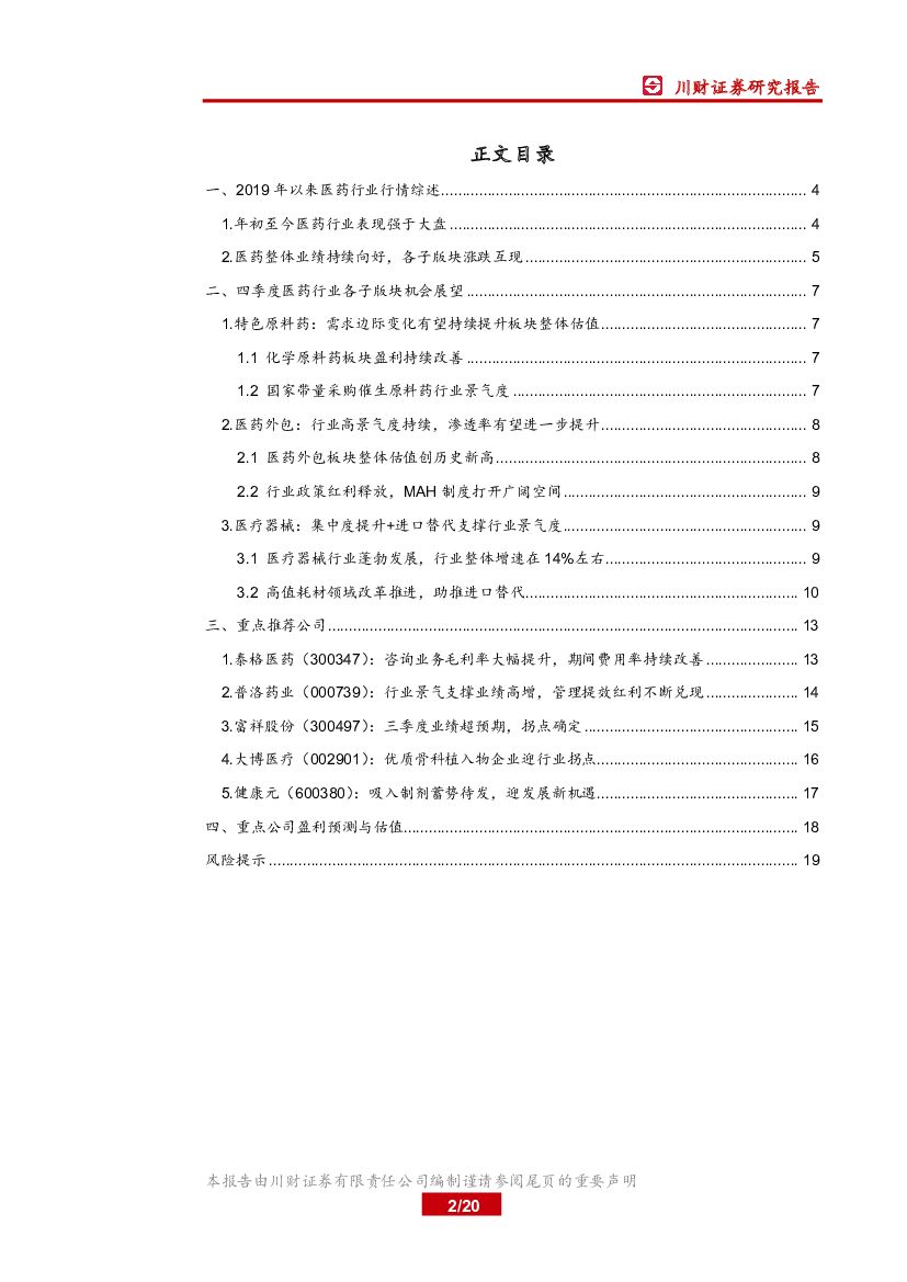 川财证券:医药生物行业2019年第四季度投资策略:板块迎来估值切换,关注四季度业绩优异个股.pdf