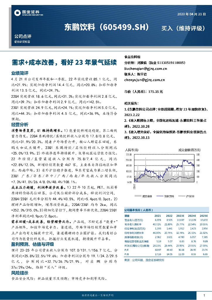 国金证券:东鹏饮料(605499)-需求+成本改善,看好23年景气延续.pdf