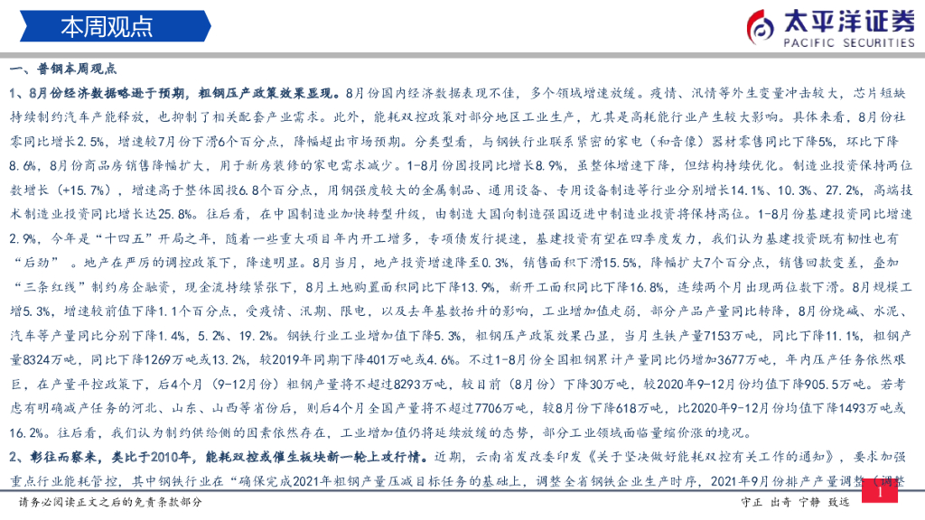 太平洋证券:钢铁周报:限产叠加能耗双控使供给收缩大幅超预期,钢材利润持续扩张.pdf